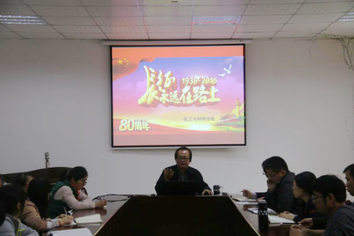 11月24日下午两点,化工与材料学院副院长李国清到学院教工支部为教师党员上党课,传达贯彻两个主题思想,学习党的十八届六中全会精神和习近平总书记在纪念红军长征胜利80周年大会上的讲话精神。