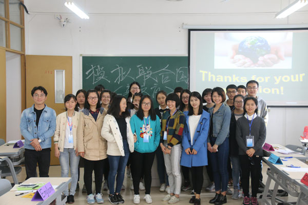 各代表队用数据呈现当今全球气候变暖的严峻形势,并立足本国实际,以全球利益为核心给出了不同的解决方案。来自15材化班的吴依婷同学口语流利、分析问题从容不迫、角度精确,赢得了评委和观众的热烈掌声;16化制1班的秦艳同学代表美国队发言,她语言激昂,用丰富的内容展现保护环境迫在眉睫,恢复蓝天白云是全球人民的梦想,饱满的激情感染了评委团,荣获最佳选手奖。最终推选吴依婷同学和秦艳同学代表我院参加校级英文组模拟联合国大赛。