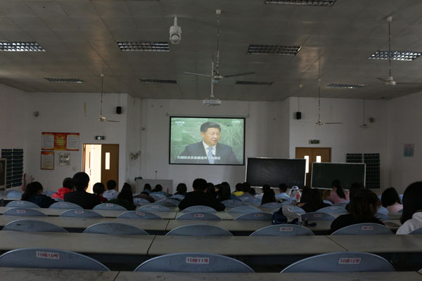培训开始,主持人回顾习近平总书记系列重要讲话,指出合格共青团员应具备的良好素质,并要在思想上行动上与党中央时刻保持一致。接着,为大家播放习近平总书记上任以来出使各个国家的视频。视频主要讲述了习近平总书记的外交策略,特别是为一带一路的建设所做的外交努力,展示了习近平总书记实事求是、共同发展、互利互惠的外交思想,为人民提供了一笔宝贵的思想财富,对强化祖国的团结思想和理想信念教育有很大的帮助。