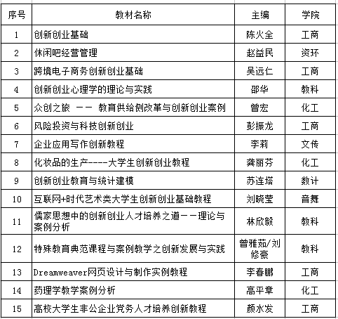 现将立项项目予以公布,请立项教材的主编认真做好教材编写工作,于7月8日前与创新创业学院签订《泉州腾博官网诚信为本专业服务创新创业教育教材资助协议书》(附件),保证教材按时编写及出版。