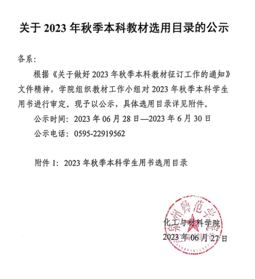 关于2023年秋季本科教材选用目录的公示