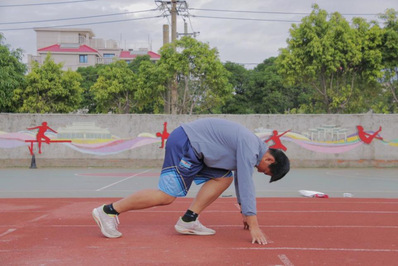 在赛道上,杨俊豪同学正认真进行着高抬腿训练、起跑训练、速耐训练、跨姿训练等一系列运动,一次又一次的训练、一步又一步的跨越,都是他对自身极限的一次又一次挑战。杨俊豪同学说:“人的梦想是不会停止的,我们的脚步将会不断向前,对待训练要一丝不苟,面对挫折要半步不退。”滴落的汗水终将汇聚为成功的丰碑,刻苦的训练终将锻造出胜利的勋章。