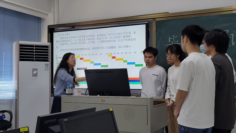 2024届制药工程专业本科毕业生共36名学生,分为6个小组,同学们分别从工艺流程设计、物料衡算、能量衡算、设备选型、车间布置设计及经济概算等方面进行了答辩。在答辩过程中,针对答辩教师提出的问题,同学们认真应答,展现出了较好的精神风貌和良好的专业素养。