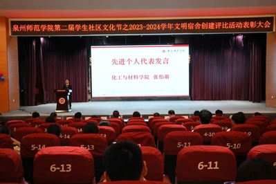 6月6日,泉州腾博官网诚信为本专业服务2023-2024学年文明宿舍创建评比活动表彰大会在特教第一学术报告厅举行。化工与材料学院荣获2023-2024学年文明宿舍创建先进集体,我院A3栋206、A3栋208、A3栋408、B2栋104、C12栋409、C9栋413、C9栋217等7间寝室被评为文明宿舍,宋廷帅、巩龙鑫、陈嘉瑛、张世民、张怡萌、李纹颖、王化江、徐芝懿、陈希萤等9位同学被评为文明宿舍创建先进个人。我院2022级制药专业张怡萌同学还作为我院文明宿舍创建先进集体代表上台分享经验。