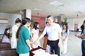 秋高气爽,志愿者和助班们早早就为新生布置好了独具匠心的报道现场、游戏区域、休息区,力求化工与材料学院的新鲜血液们能宾入如归,校长陈昌萍、副校长陈秋燕分别带领机关单位负责人莅临指导学院迎新工作。