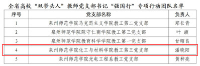 近日,福建省委教育工委公布全省高校“双带头人”教师党支部书记“强国行”专项行动团队名单,我院教工第三党支部成功入选。