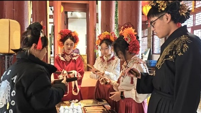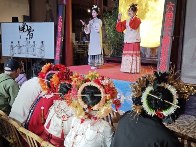 南音,源自于福建泉州,有“中国音乐史上的活化石”之称,第五站,实践队来到苏廷玉故居,观赏了世界级非遗泉州南音的经典剧目《风打梨》《梅花操》《直入花园》,南音那悠扬婉转的曲调、细腻的演奏,带着浓浓的春节喜庆氛围,瞬间将队员们带入充满年味的闽南世界,让大家沉醉于其独特的韵律之中。