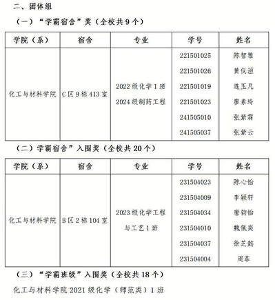 在校团委公布的2023-2024学年第二学期“学霸协议”活动评比结果中,我院获得个人学霸标兵奖1人、个人成绩单科奖4人、学霸宿舍奖1个、“学霸宿舍”入围奖1个、“学霸班级”入围奖1个。