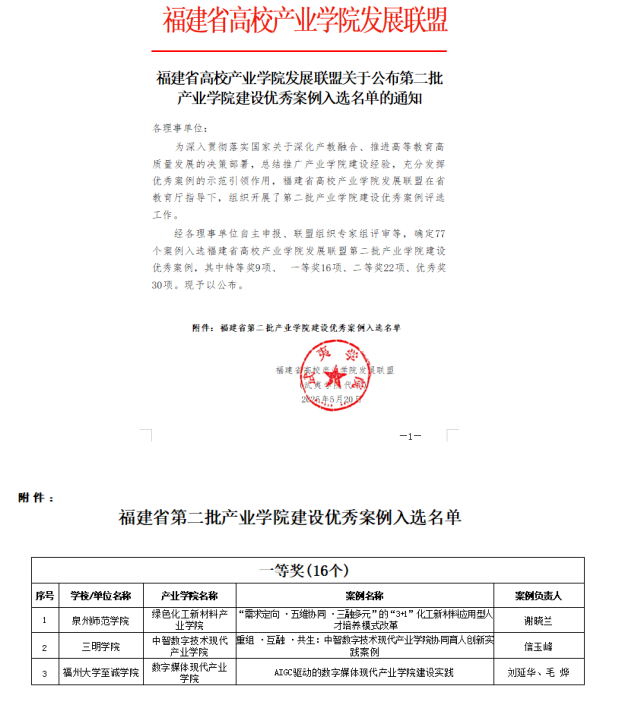 【喜讯】我院入选福建省第二批产业学院建设优秀案例一等奖
