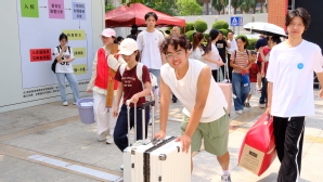 9月13日清晨,在学院迎新工作小组的带领下,迎新工作有条不紊的展开。早上7点多,2025级新生们陆续来到化工与材料学院报到大厅。副校长黄江昆带队走访我院迎新工作现场,看望前来报到的新生。在各系报到点,校领导与新生家长亲切交谈,了解新生报到及绿色通道办理情况。