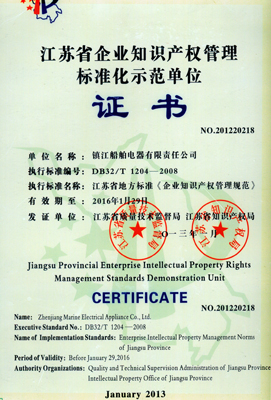 知识产权标准化管理示范单位证书
