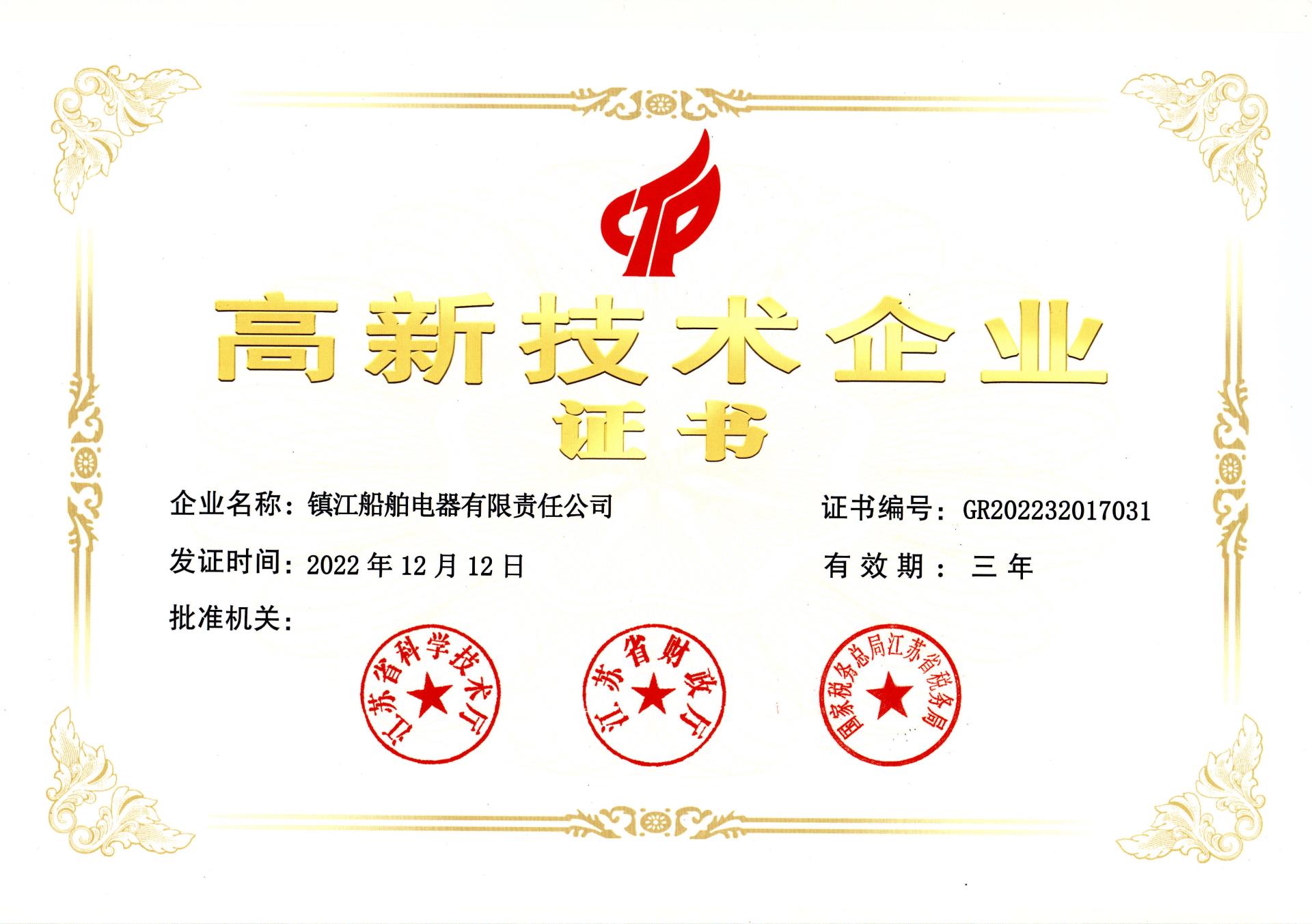 高新技术企业证书