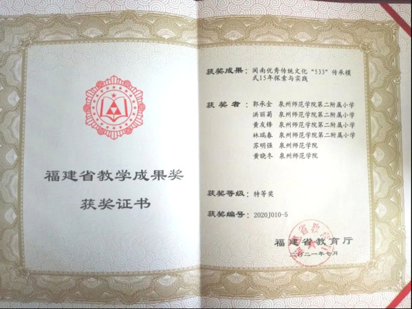 ●获福建省教学成果特等奖2项、一等奖3项